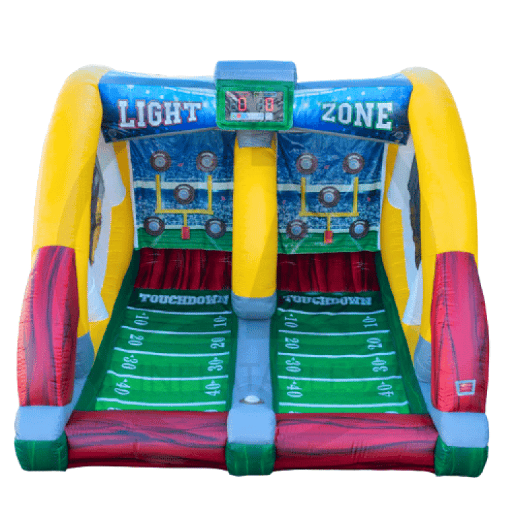 Step up and test your throwing skills with our Light Zone Football Toss game rental! This exciting interactive challenge lets players aim for targets and rack up points, making it a perfect addition to school events, backyard parties, and competitive game setups.